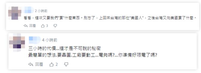 除了抨击美国口惠而实不至,更有台网友指出,面对旋风3小时和75万剂疫苗,民进党当局又是鞠躬又是作揖,更忙不迭公开召告,此等嘴脸,令人作呕。